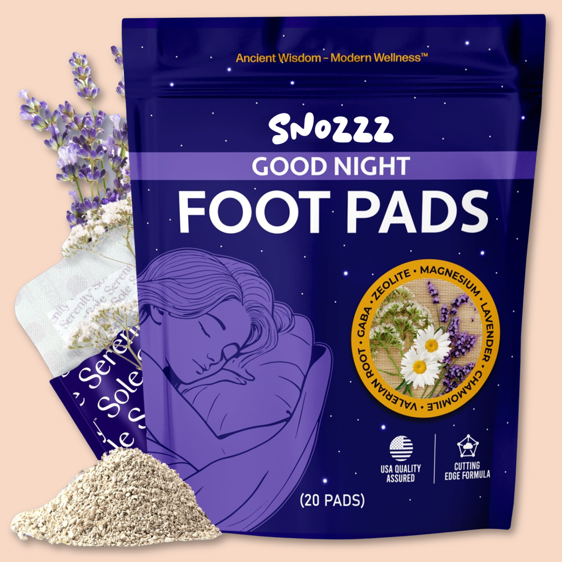 snooz® is a natural detox foot pad infused with Volcanic Zeolite, Magnesium, and Calming Botanicals to draw out toxins, promote relaxation, and enhance sleep quality while you rest. Simply apply before bed and wake up feeling refreshed and rejuvenated.